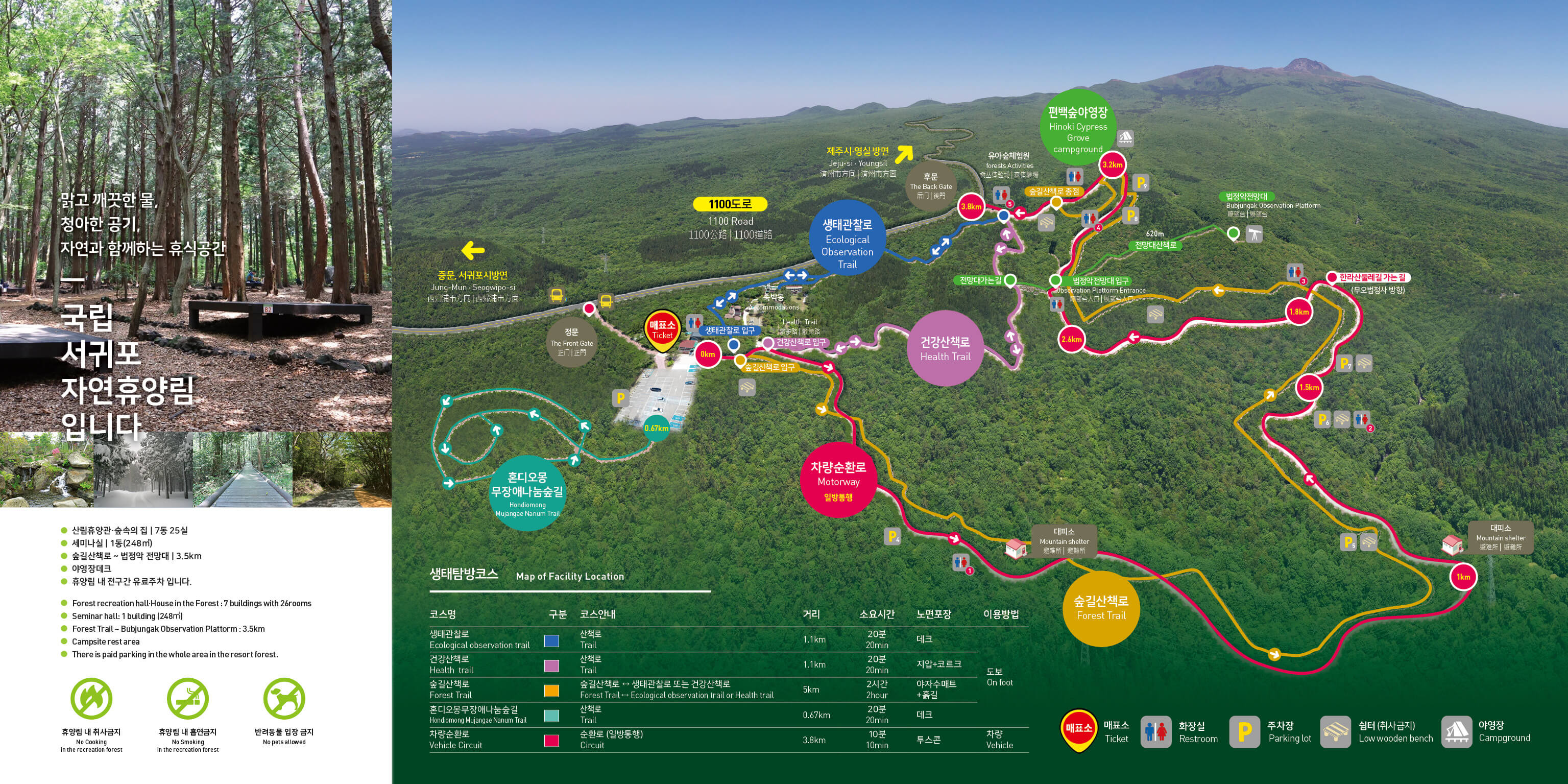 - 산림 훼손과 동물 포획, 식물 채취,자연석,수목의 채취를 금합니다.