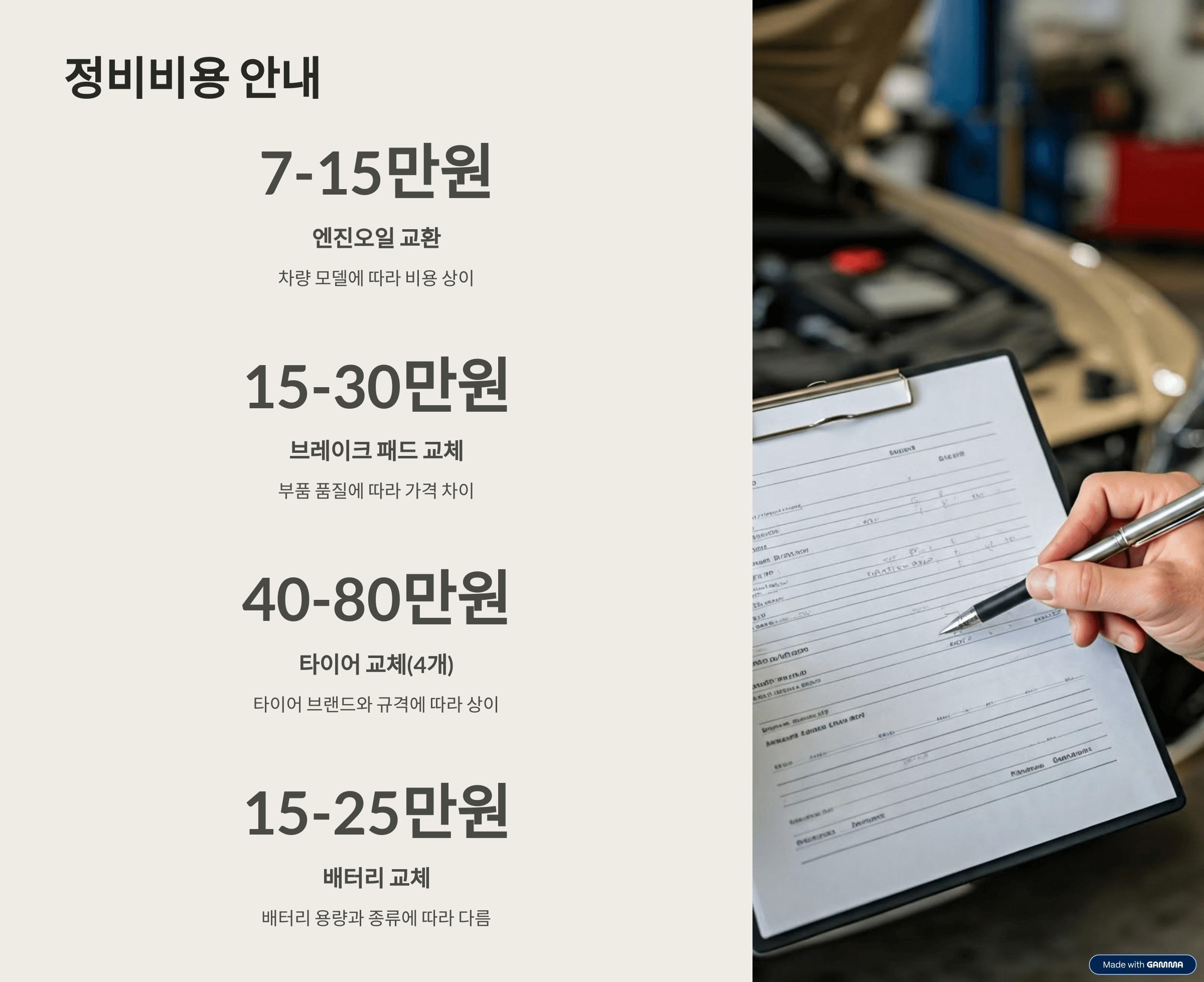 정비비용 안내