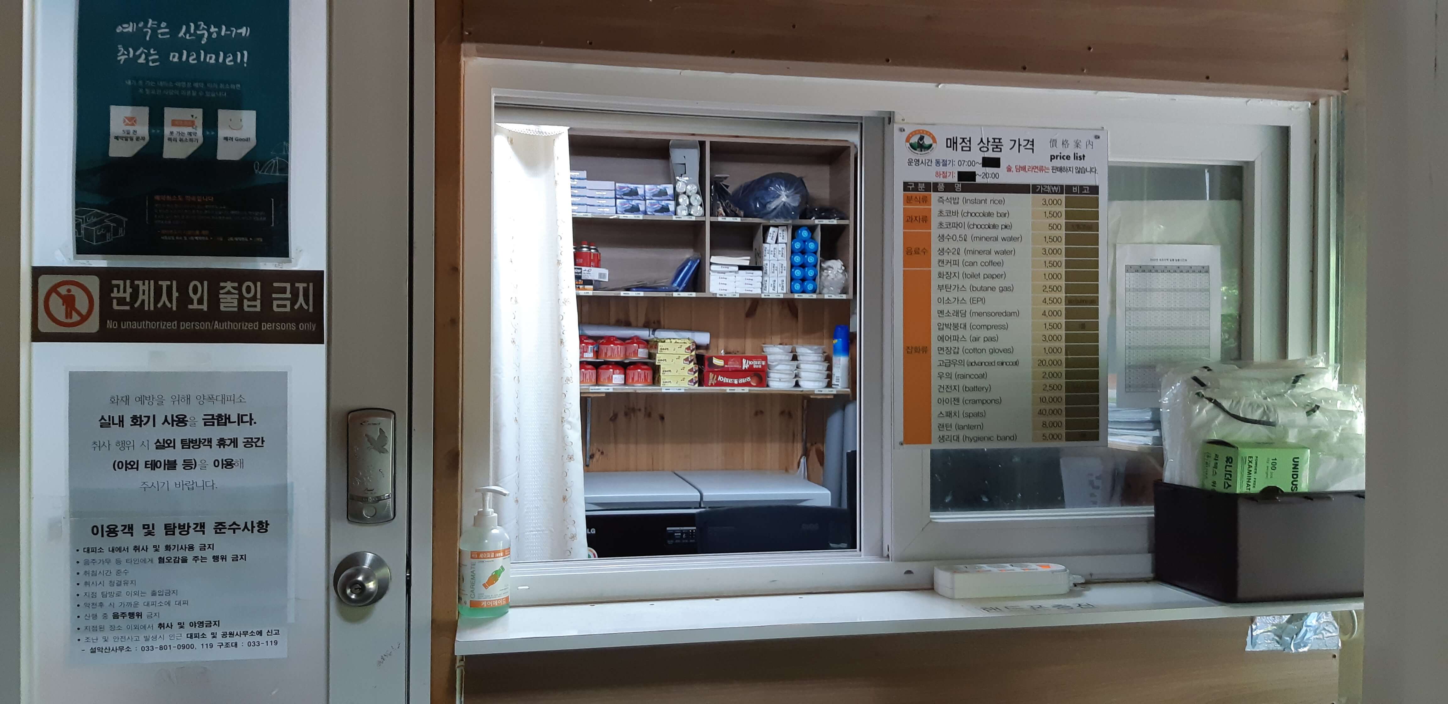 양폭 대피소 판매물품 및 위치 안내