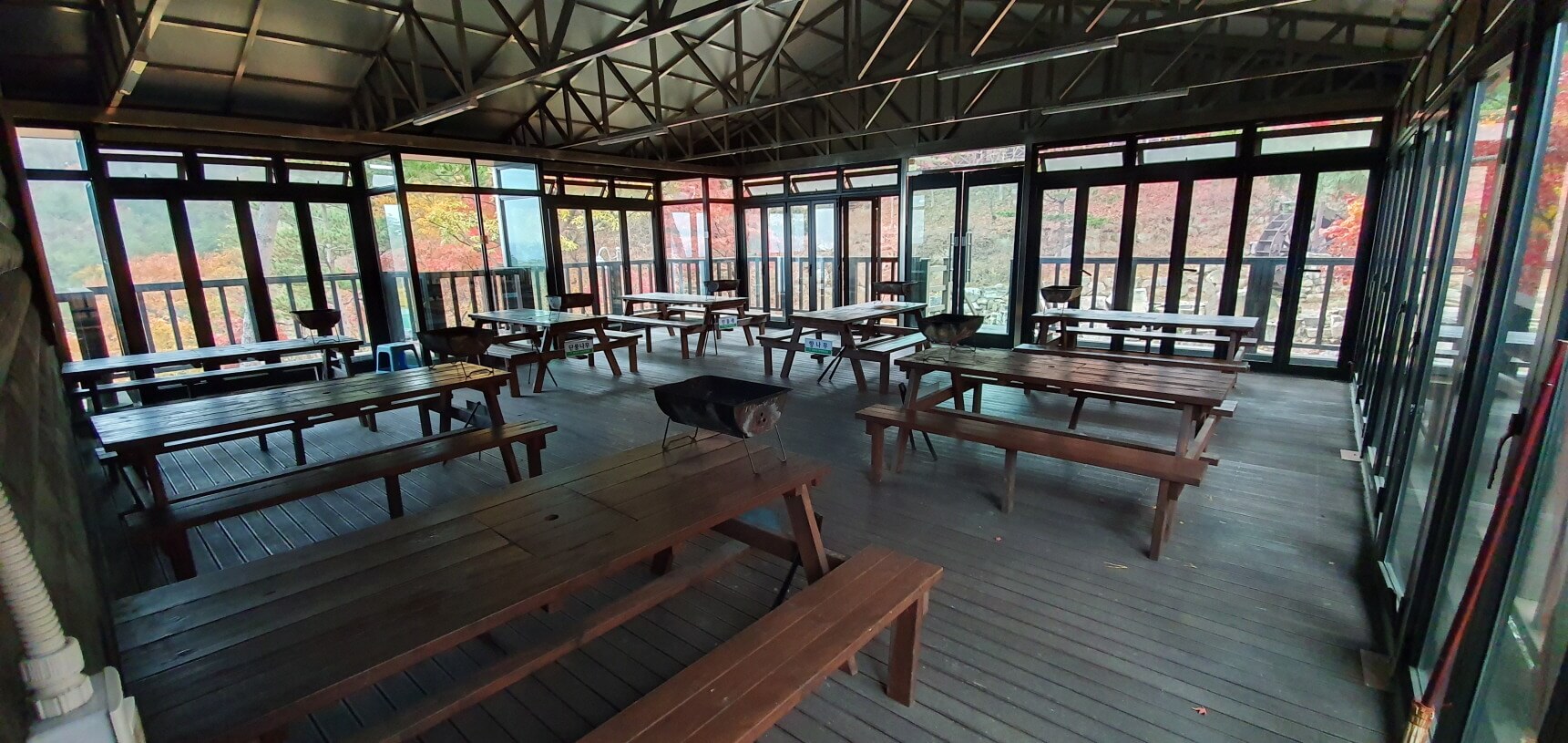 - 산막 및 산림문화휴양관 내시설 : 침구, 취사도구, 난방시설, 화장실, 데크, 바베큐시설(숯, 철망 개인지참), 수건, 세면도구는 개인지참