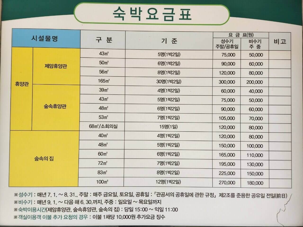 - 주말 - 금~토요일, 법정공휴일, 성수기는 7월~8월에한함