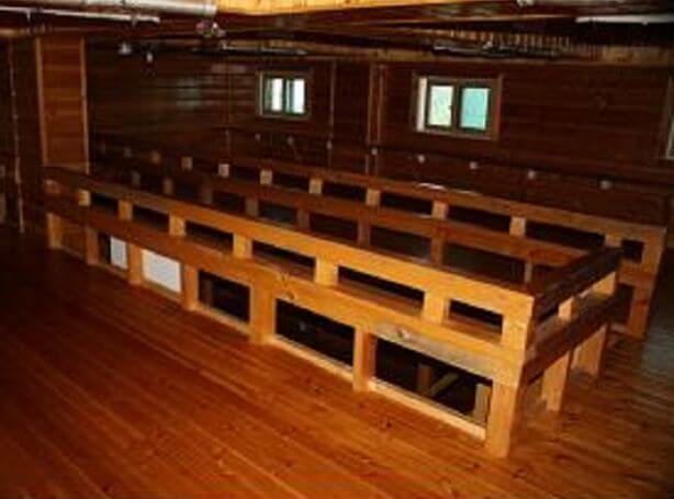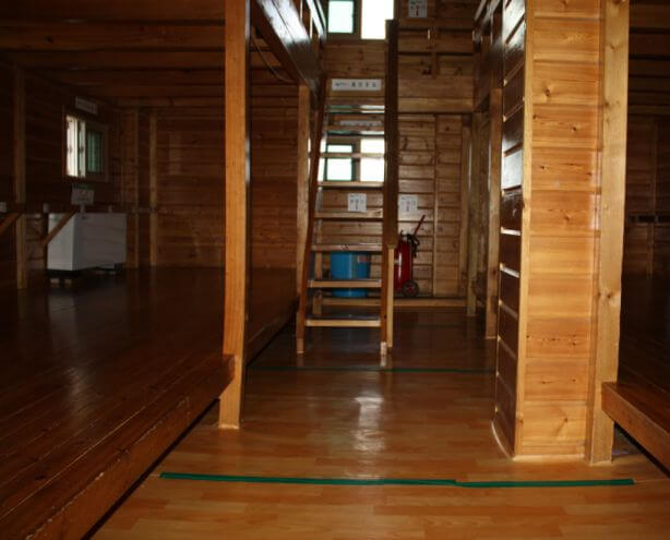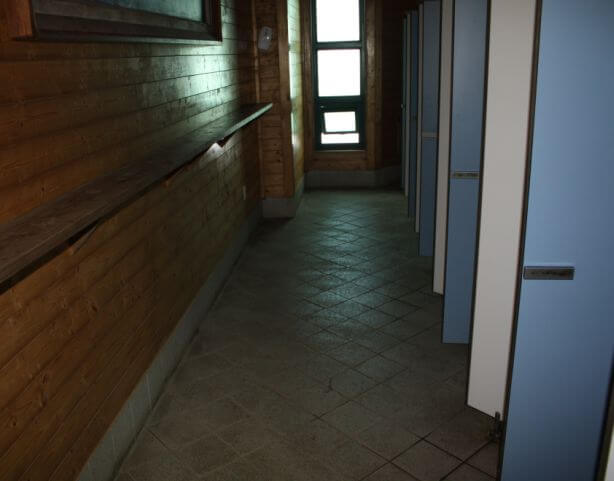 홀은 있지만 개인 침대는 아닙니다. 대피소의 침대는 서로 빽빽하게 들어차 있으며, 더 넓은 코너 좌석을 선호합니다. 고도가 높기 때문에 대피소는 흐르는 물에 연결할 수 없습니다. 처음에는 기존 화장실을 사용했지만 2019년 겨울에 더 깨끗하면서도 수세식은 아닌 시설로 개조되었습니다.
