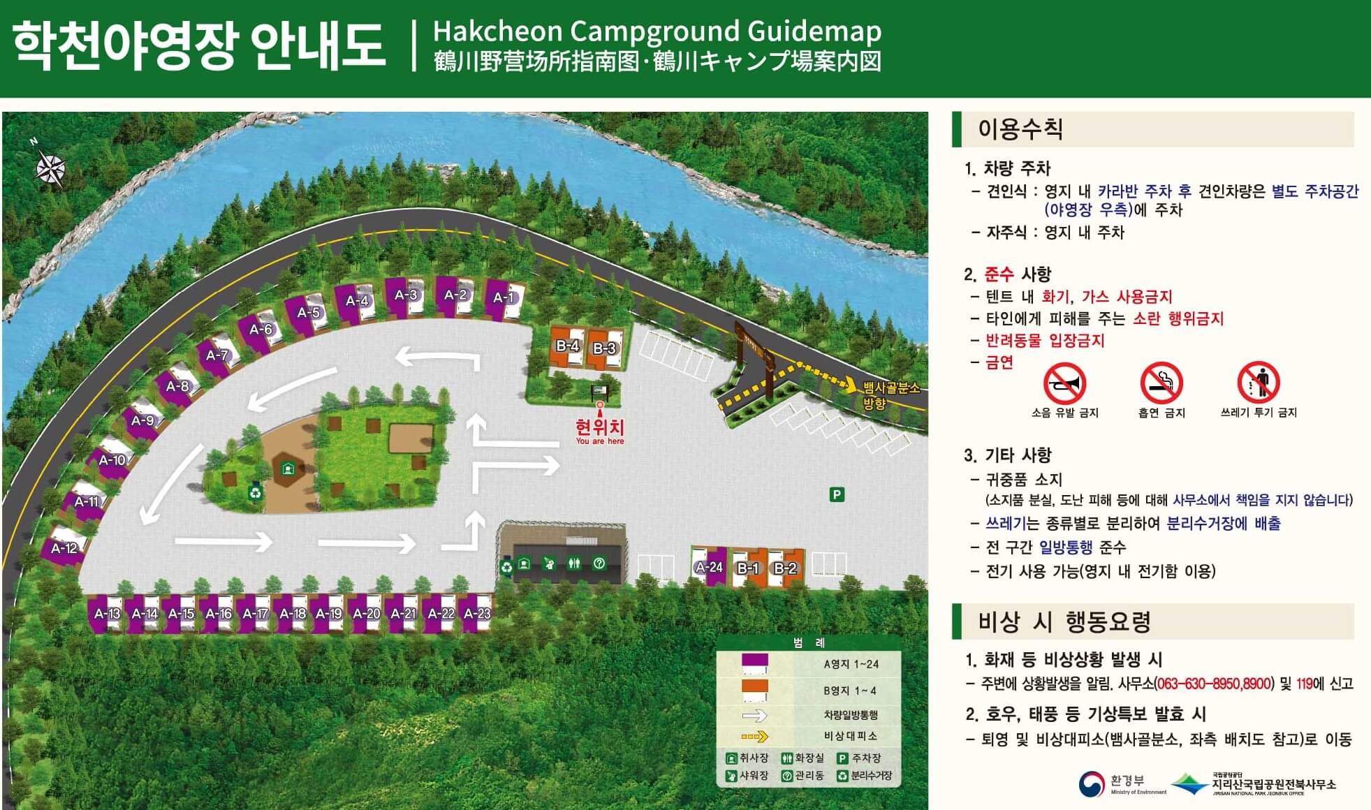 전북 남원시 산내면에 위치한 지리산국립공원 학천 야영장(캠핑장)입니다. 주소 및 문의처, 입퇴실시간, 이용금액, 예약방법 등을 꼼꼼하게 확인하신 뒤에 예약하시는 것을 추천드립니다.