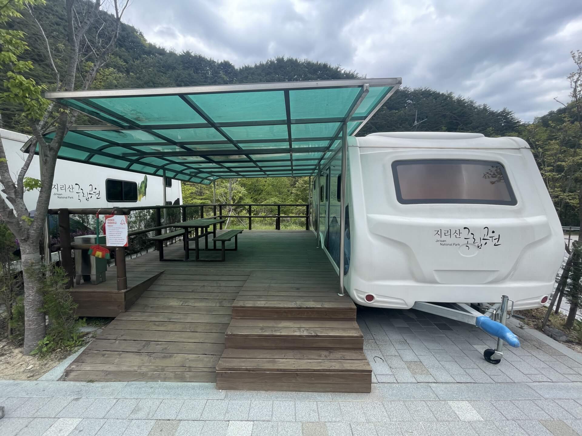 지리산 자락에 문을 연 학천 야영장은 카라반과 캠핑카 전용 야영장이다. 미리 예약된 자동차만 진입이 가능하고 카라반과 캠핑카가 쉽게 이동할 수 있도록 야영장 내부에는 블록을 깔아 뒀다.