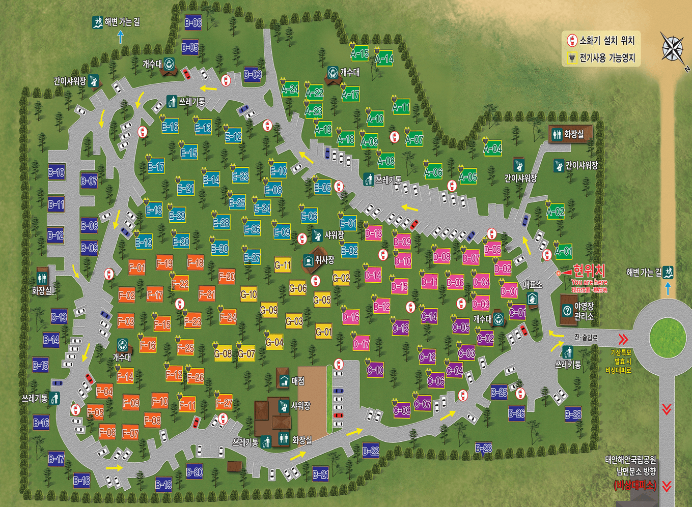 | 편의시설 | 테이블, 샤워장(04월 ~ 11월 운영, 코인샤워장 운영), 개수대 |