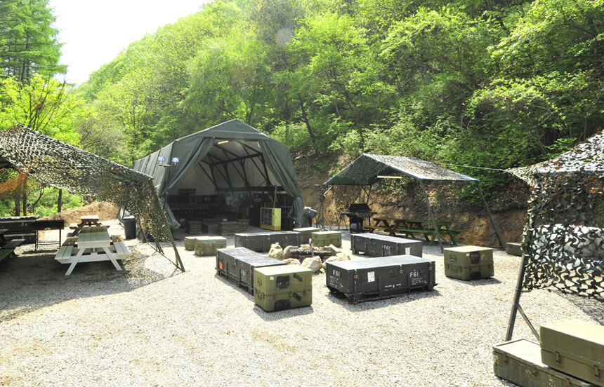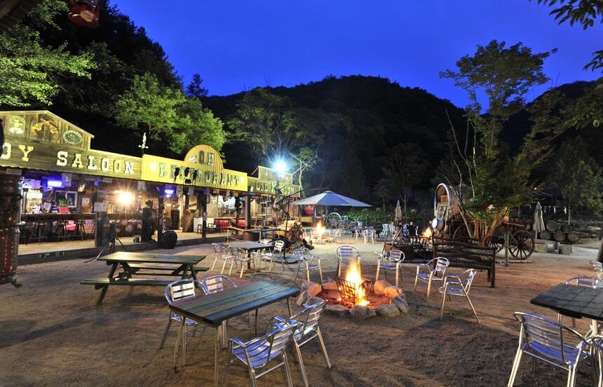오토캠핑장과 카라반을 위한 전용사이트가 준비되어 있으며 수영장,골프연습장,RC트랙 등의 부대시설과 휴양림 내에 위치하고 있는 아리조나 까페는 실제 서부시대에 사용하던 역마차 및 오래된 캠핑장비 등 여러 가지 볼거리를 제공합니다.